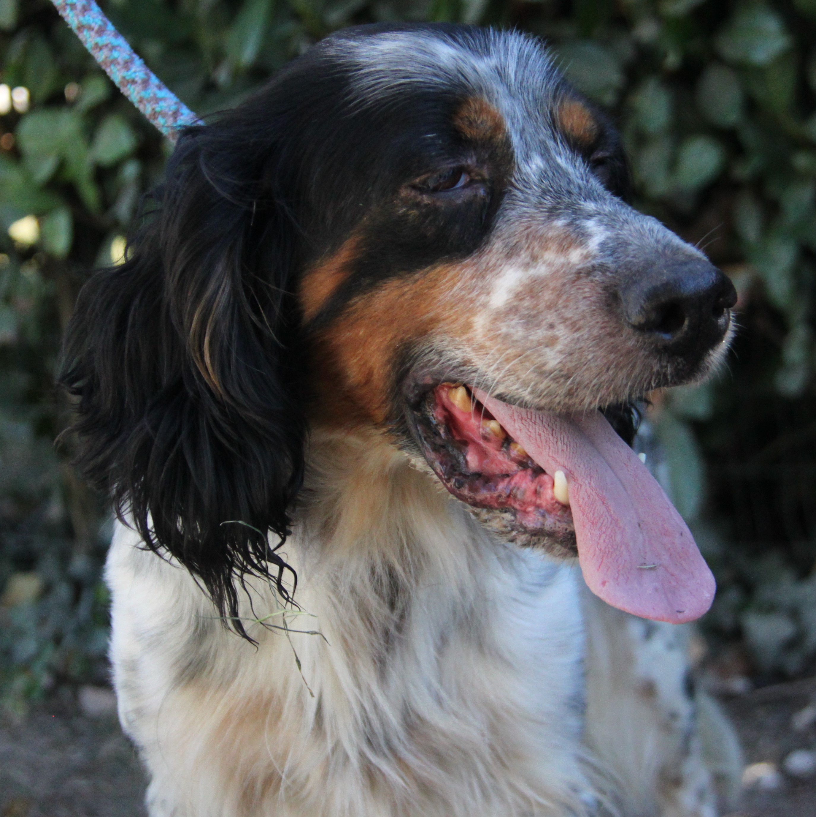 Tell, ein wunderschöner Setterrüde in tricolor, lebte bei einem Jäger. Als der Jäger aus gesundheitlichen Gründen nicht mehr zur Jagd ging, übergab er Tell und einen weiteren Hund unseren italienischen Tierschutzkollegen. Der Setterich lebt nun in einer Pension und wartet auf seine neue Familie.