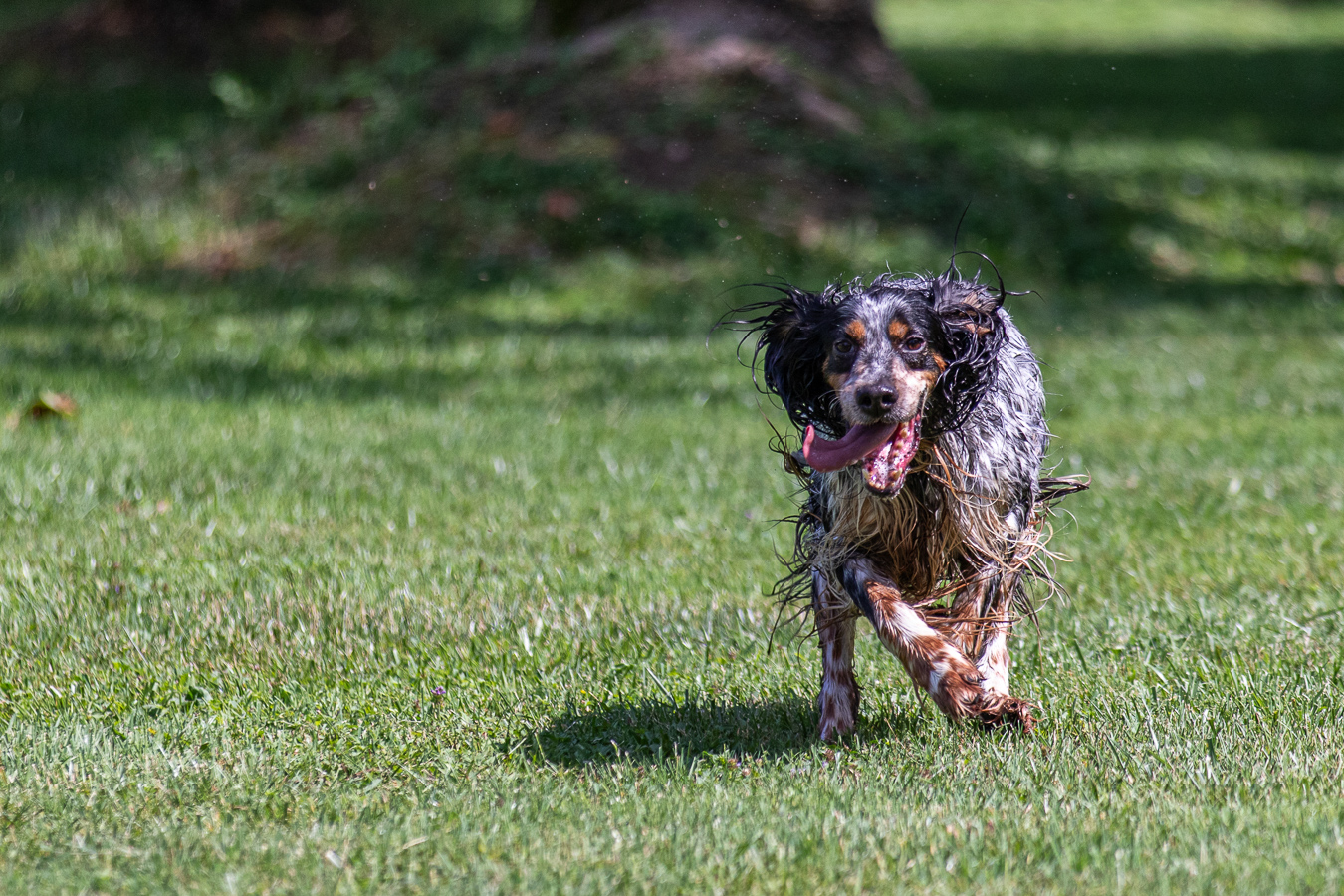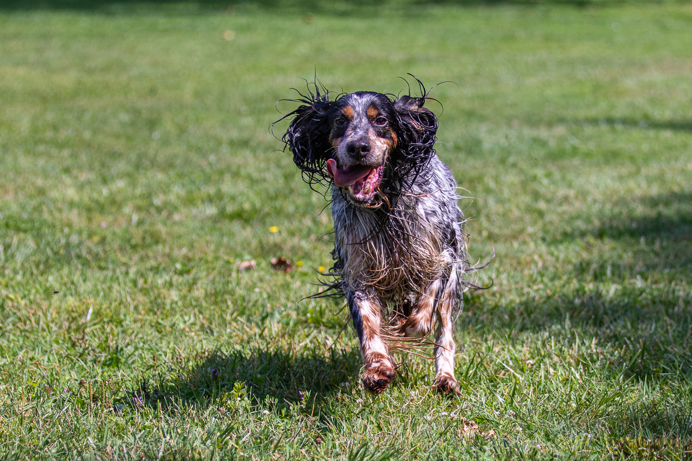 Tell genießt den Sommer. Das Baden findet der hübsche Setterrüde ganz besonders toll: