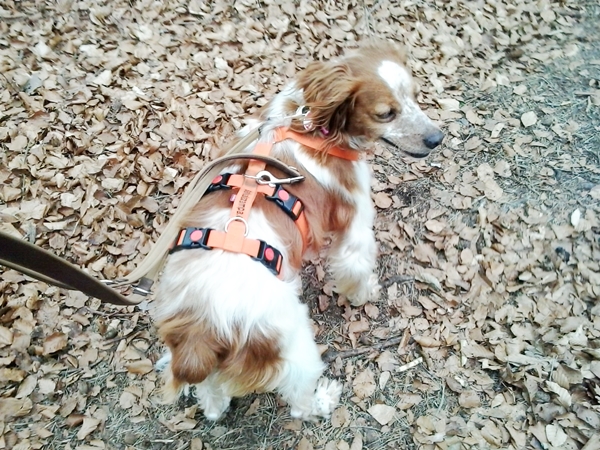 Draußen zeigen sich schon kleine Erfolge bei der Leinenführigkeit, wir arbeiten gerade am Sitzen und machen erste Rückruf-Übungen (natürlich nur an der Leine).