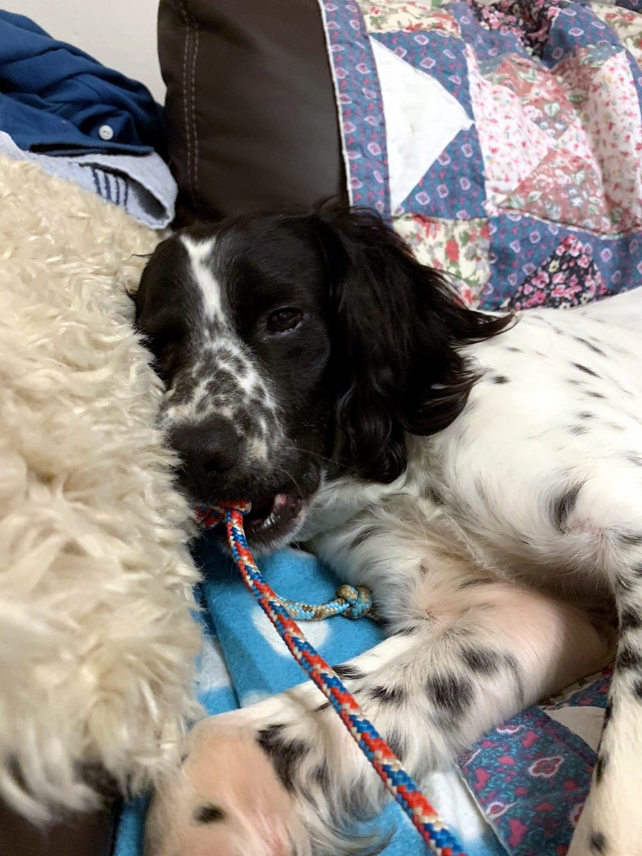 Trato ist nun seit einigen Tagen in seiner Pflegestelle.Typisch Bretone ist er eine lustige Frohnatur, er fügt sich super in den Alltag ein und ist absolut verträglich mit anderen Hunden.