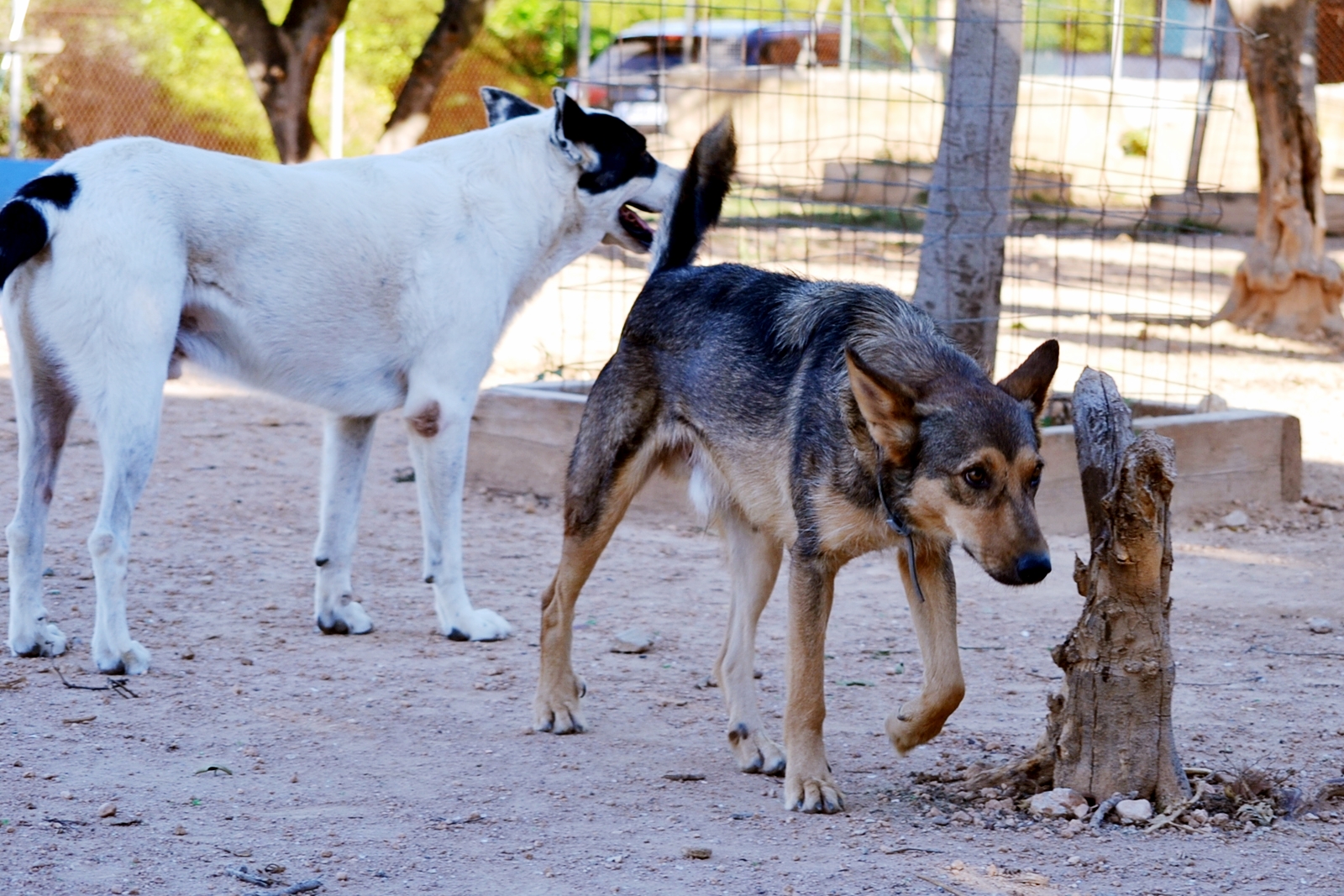 Mittlerweile kann sich Vito frei bewegen, wenn seine Betreuer in der Nähe sind. Aber wer jetzt glaubt, dass Vito seine Ängste vor Menschen verloren hat, den müssen wir enttäuschen. Vito ist nach wie vor noch skeptisch und man muss ihm den Freiraum geben, dass er auf die Menschen zu gehen kann. Ihn auf keinen Fall bedrängen oder überfordern. Daher sollte man sich schon mit unsicheren/ängstlichen Hunden auskennen. Man darf nichts fordern, schon gar nicht mit tiefer Stimme. Da schreckt Vito sofort wieder zurück und legt den Rückwärtsgang ein. Dieses sollte bei einem Hund wie Vito immer beachten werden.