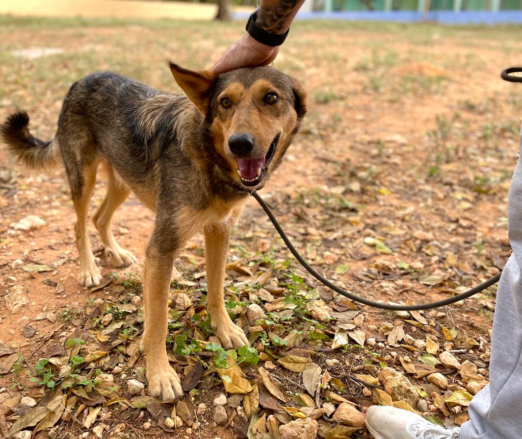 Sobald man die Leine anlegt, verändert Vito sein unsicheres Verhalten und wird selbstbewusster. Er läuft perfekt an der Leine, lässt sich gut führen und benimmt sich schon ganz selbstsicher. Bei Spaziergängen mit den freiwilligen Helfern zeigt Vito seine Neugierde und Interesse an der Umwelt. Dann ist nichts mehr von der Unsicherheit zu spüren. Vito hat gelernt, dass ein bestimmtes Verhalten belohnt wird und so sucht er immer wieder den Blickkontakt und möchte dafür mit positiver Verstärkung - gerne in Form eines Leckerlies belohnt werden 🙂