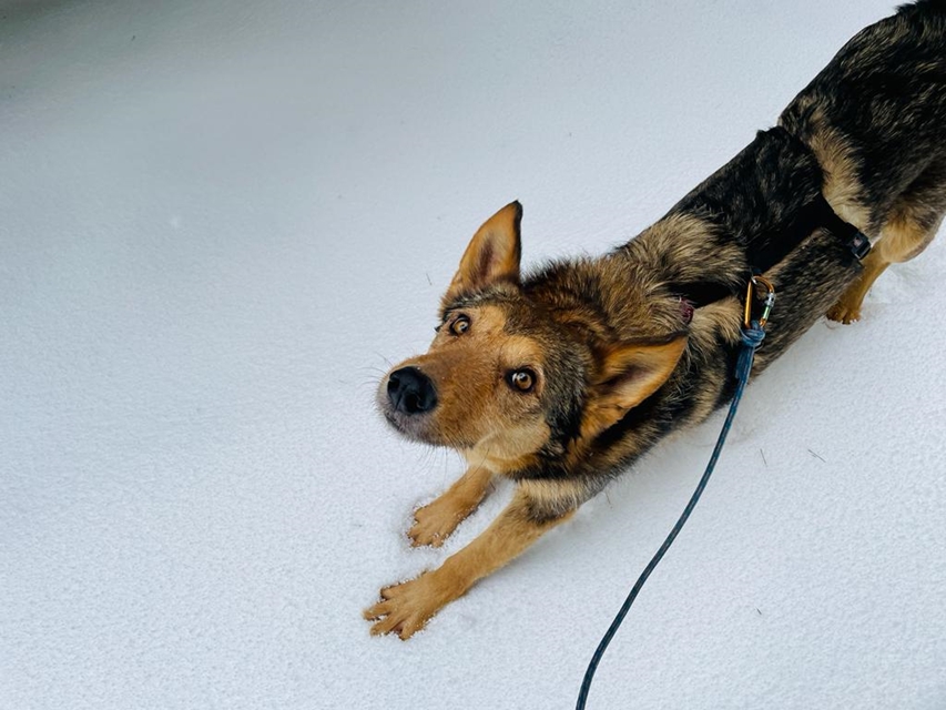 Vito ist auf seiner Pflegestelle gut angekommen, hat viel schneller als erwartet Vertrauen gefasst und eine Bindung zu seinen Bezugspersonen aufgebaut. Durch seine Unsicherheit ist er anfangs noch etwas anhänglich und folgt auf Schritt und Tritt, sobald er sich aber sicher fühlt und die Abläufe kennt, entspannt sich diese Seite.